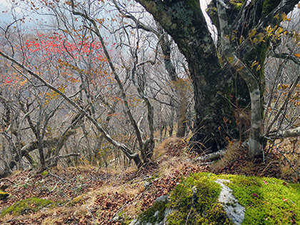 篶坂ノ丸(すずさかのまる。1456m)に到着。そして何と、ここでM氏と再会。以前、東日原バス停で出会い、日原についていろんなことをご教示いただいた方です。M氏は腰を下ろして休憩中でした。