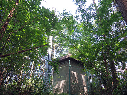 萩ノ平尾根との合流地点に引き返し、萩ノ平尾根を歩きます。この岩場を下りながら、以前、この下を疾走していったマウンテンバイク軍団のことを思い出しました。