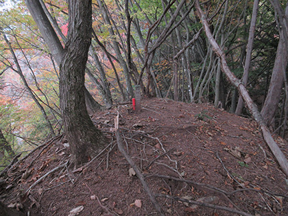 右を急降下から急登です。割れて頭のなくなったプラスチック杭が刺さっていました。