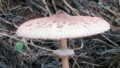 採ったマイタケ。薄灰色の小さな株が2つです。多分、これからもっと大きくなると思うんですが、おいそれと来られる場所ではありません。採っちゃいます。