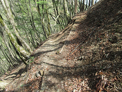 中腹道を上流に向かって少し進んでみました。後でわかったことですが、前回はほんのもう少し先で尾根から水根沢に降りています。まったく気づきませんでした。
