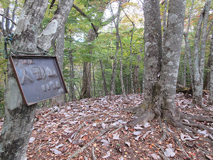 人形山の山頂です。1176mの標高点が設定されています。人形山東尾根を下ります。