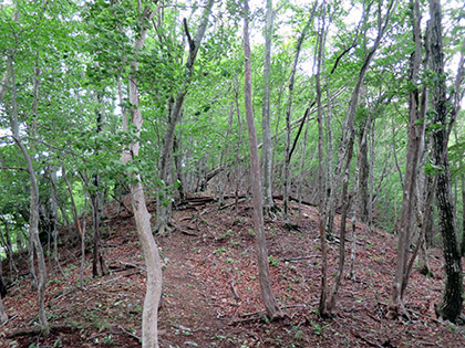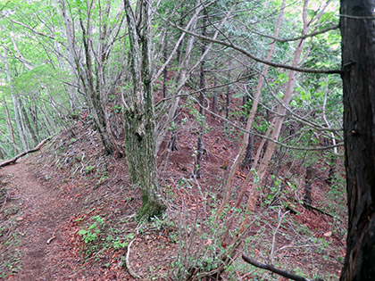 何度も巻き道と接近あるいは合流します。前回わたくしはここで左に進み、尾根を大きく外れてしまいました。