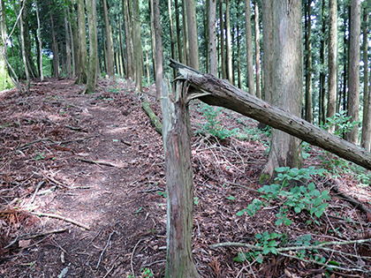 おおざっぱにいって左の埼玉県側は自然林で、右の東京都側は植林でした。根っこは両側から攻めてきていました。