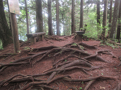 石祠から2分ほどでいかにも峠、みたいな場所に出ました。ここがどうやら本物の天目指峠みたい。