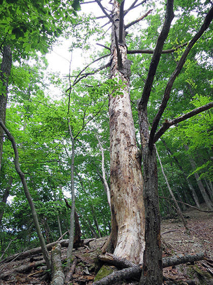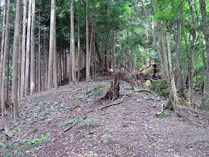 こちらはその反対側。尾根を見上げたところ。