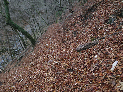 ちょっと登ってコツ谷左岸尾根を乗り越します。