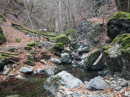■JR青梅線奥多摩駅→[START]東日原バス停→(2時間)小川谷林道・終点広場→(40分)三又→酉谷→(1時間)日向谷出合