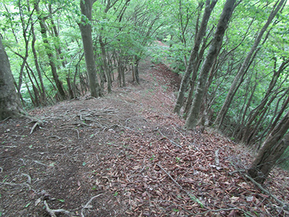 登りきると1200m圏のピークです。左から登ってきた尾根と合流し、下ります。