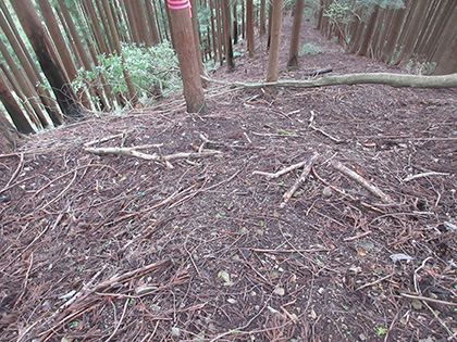 ⑭エビ小屋山南西尾根です。クマタカ沢右岸尾根からエビ小屋山南西尾根まで作業道でつながりました。