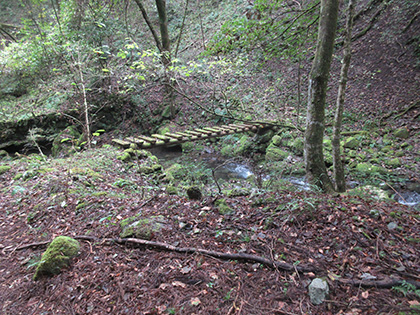 木橋を渡り、山腹をゆるやかに登っていきます。