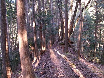 うろうろ探して「これかな」と思ったのがここです。建物はありません。痕跡も見当たりませんが平地だし向きは南東で日当たりはバッチグー。林道入沢線も遠くはありません。いまは平地の隅がヌタ場になっています。「うん。ここ」と自分を納得させて尾根歩きに復帰します。