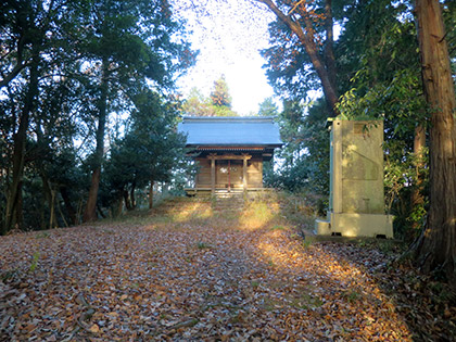 琴平神社(ことひらじんじゃ)に到着。右は簡易トイレですが鍵がかかっていました。防寒着がわりの雨具を脱いでザックに突っ込み、ペットボトルに詰めてきた紅茶を一口飲んで出発します。社殿の左に道が続いています。