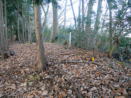 尾根筋に乗りました。土台と屋根だけになった祠がありました。