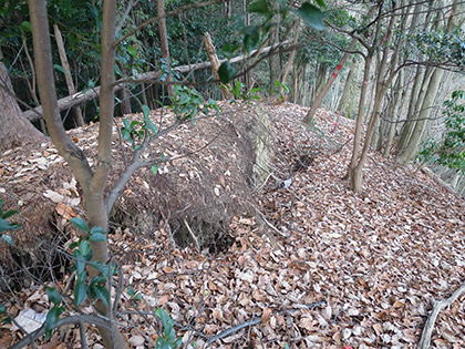 550m圏です。ロープが張られています。ベリッと倒れた木の右にもロープはのびていて