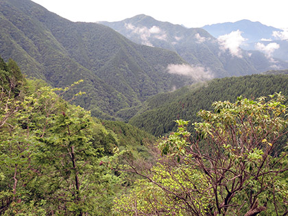 正面(右の写真の左端)に川苔山(かわのりやま)が見えます。