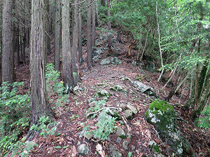もっとノッペリした道が分岐したりして、作業道とはいえなかなか厄介です。ここは下る道をチョイス。