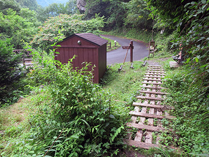 谷の左岸に渡り、ちょっと歩くと第三の作業小屋が見えてきました。