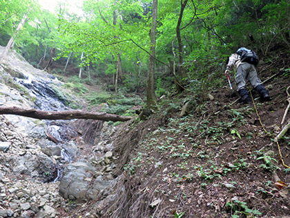 コツ谷右岸尾根を回り込んで踏み跡をたどります。この道が今回のルートでいちばんデンジャラスでした。