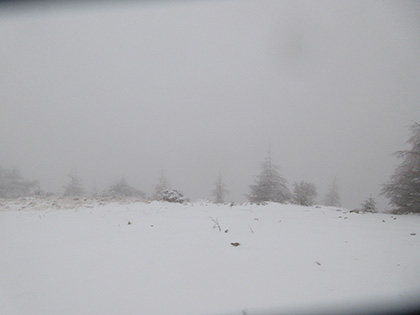 焦点の定まらない空間を眺めながら下山ルートを考えます。時刻はすでに16時20分。時間的に早く下山できるのは当初の予定の稲村岩尾根ですが、途中で17時の日没を迎えるのは必至。急降下の多い尾根はデンジャラスです。