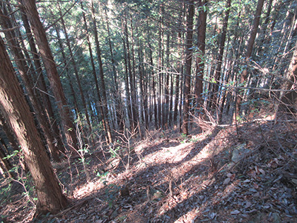 凹み道が蛇行してややこしい地形です。テキトーに尾根上をたどります。