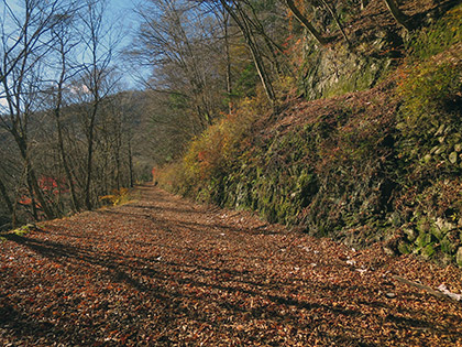狭い道です。落ち葉が積もっていて道のありかがはっきりしません。ちょっと怖かったです。