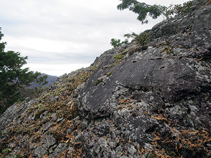 正面は大岩。ドンと立ちはだかっています。とても登れそうには見えませんがとにかく近寄ってみます。