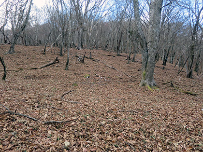 登ります。こんな尾根歩きがしばらく続きます。尾根筋なんてものはほぼありません。