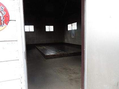 どうも〜。誰もいない。何人ぐらい泊まれるんだろう。きつきつで15人くらい? 三和土も使えば20人は泊まれそう。
