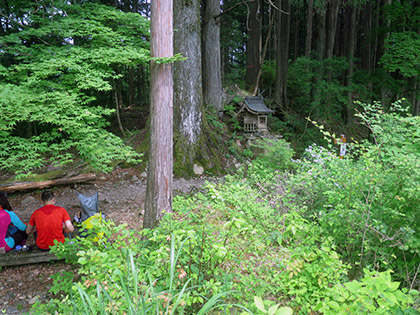 大根山ノ神。杉ノ尾根は写真の奥に続きます。登山道は右へ、鳩ノ巣駅まで下っていきます。