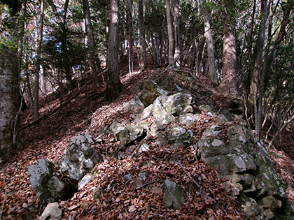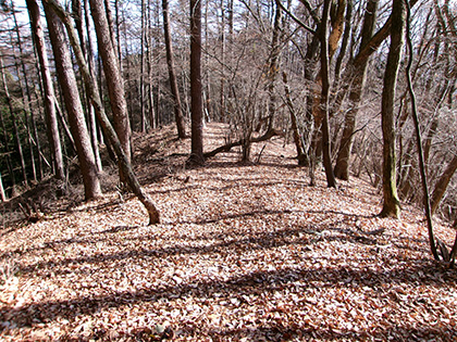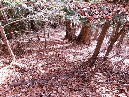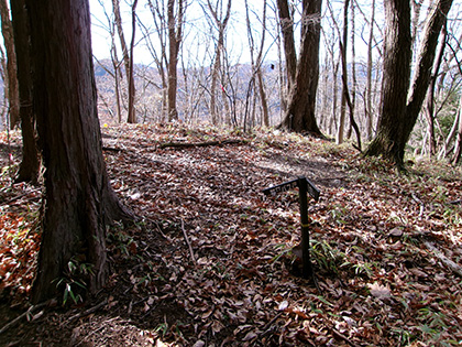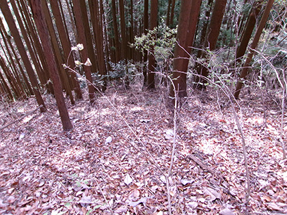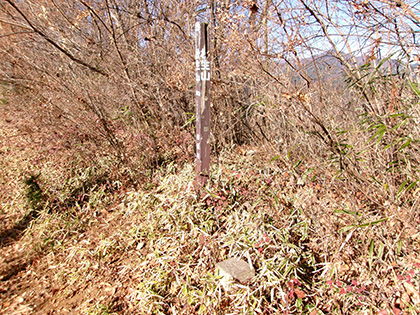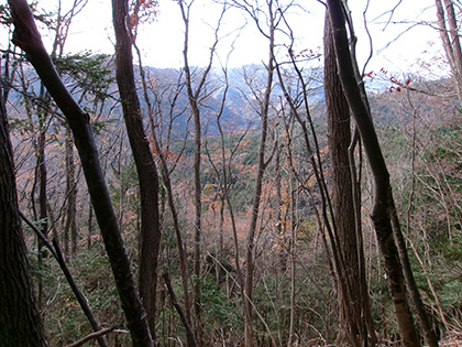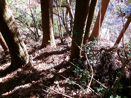 ダイコン沢左岸尾根の下降点です。ちなみに内蔵ノ助山の標高なんですが、地形図ではどう見ても770m圏です。けれどもどうやら一般に流布している標高は783m。なぜだろうと思って調べてみたら『奥多摩』(宮内敏雄 昭和刊行会 昭和19)の200ページに「独標七八三米の内蔵ノ助山」という記載がありました。これが出処でしょうか。