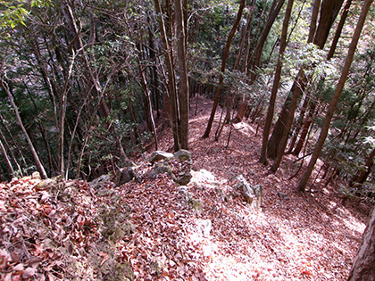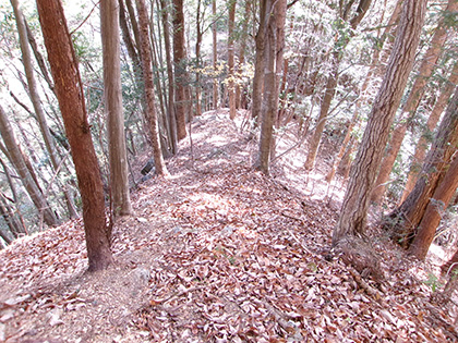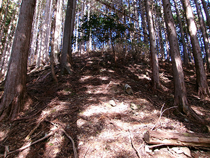 下ります。左植林、右雑木の明るい尾根です。そこそこの急降下です。