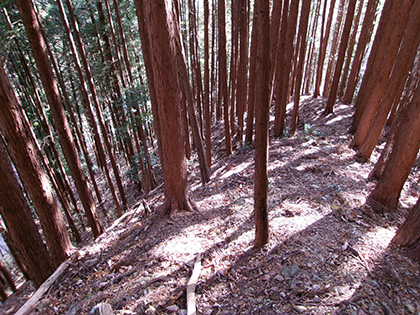 植林内を下っていきます。