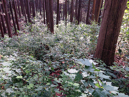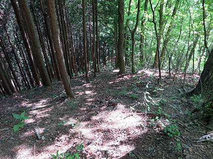 まったくなにがなにやらわからないけれど、尾根の先を撮影した写真。恐ろしいほどの急斜面で、純正の尾根歩きは断念。地図にはないけれど利道らしき道を下ることにした。