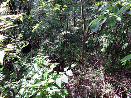 道らしきものが続いていたけれど、残念ながら、この先は崩落した崖だった。