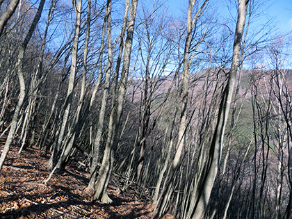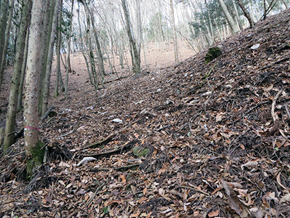 (いつのまにか)巳ノ戸尾根に取り付いて、金網沿いに巳ノ戸尾根を登る。この金網は古びて錆びているけれど有刺鉄線が絡んでいたり、立木との間に針金が結んでいたりしてなかなか侮れない。金網からはやや離れて歩くのが吉。