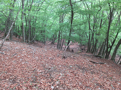 登ってきました。窪地を渡り、直登を続けていたんですが、あまりにキツいので左へ斜上。