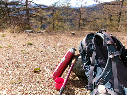 水筒に詰めてきた熱々のほうじ茶を飲みます。登ってきた男性ソロハイカーと挨拶を交わして狩倉山をめざして石尾根を下ります。