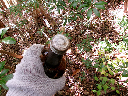 三楽オーシャンウイスキー(多分)の空き瓶を拾い上げてみました。もちろん、中身の有無を調べたわけではありません。空でした。