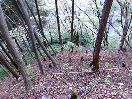 下ります。切り株が並んでいますがこんな斜面で伐採作業なんて正気の沙汰ではありません。