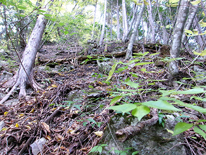 尾根の右手は小中沢に向かってキツく切れ落ちています。