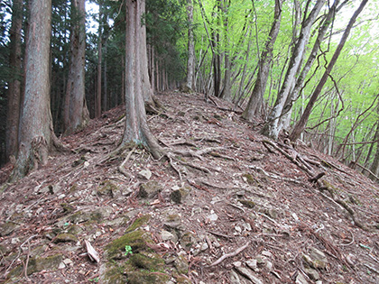 岩はなくなり、急登が残りました。あのてっぺんで左から登ってきた尾根と合流しそうです。