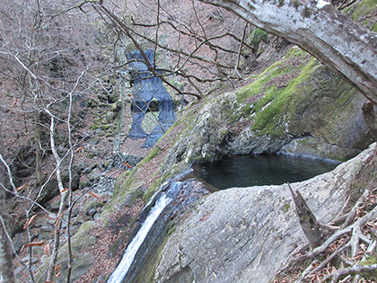 ネジレの滝(上段6m、下段3m)。ねじれています。ちょっと陰鬱です。