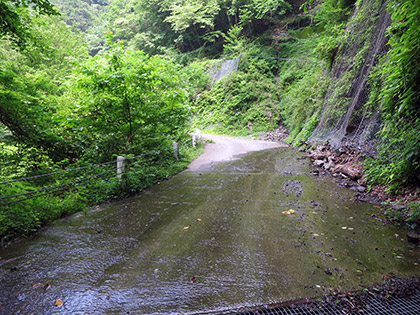 おはようございます。東日原バス停を出発して路面の「吉」みたいな「+10」を見ながら林道日原線を目指します。