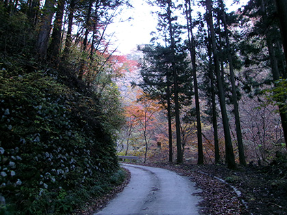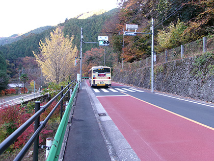 おはようございます。武蔵五日市駅から数馬行きのバスに乗って南郷バス停で降りました。バスが跨いだ横断歩道から左に下って南檜原小学校跡に沿って