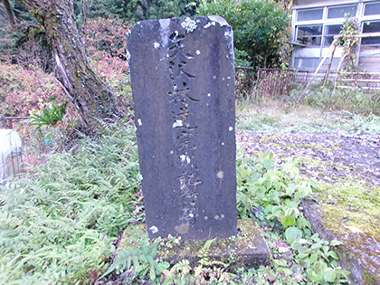 突き当りを右へ曲がるとすぐに「矢沢林道完成碑」が建っています。