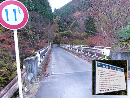 矢沢に架かる矢沢橋を渡ると矢沢林道の起点を示す新しい林道標が設置されています。起点論争勃発必至です。
