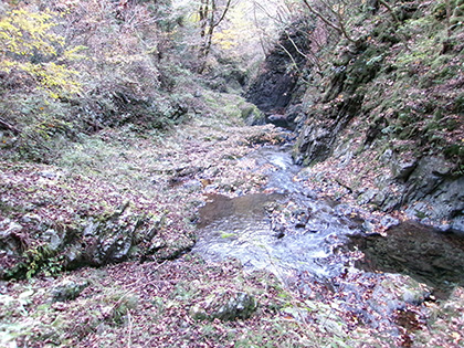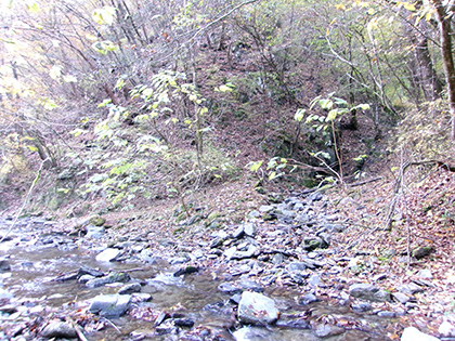 長尾尾根844m峰北東尾根の取付は矢沢と石原窪の出合です。そもそも出合に立てるのか不安だったんですがこれといった障害もなく、矢沢を渡って出合に立つことができました。