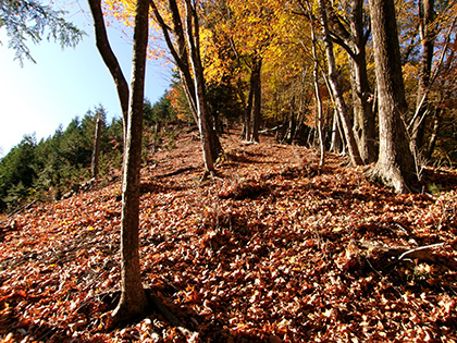 急登に思いやられました。ただ、左からビシッと日を受けながら伐採地跡のへりを登り、どか〜んとした眺望に見とれたりもしたのでした。