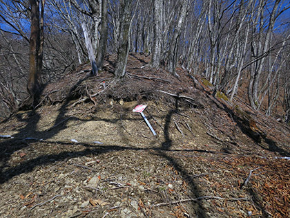 もう一つの尾根がここです。ここにも赤帽白杭が立っています。